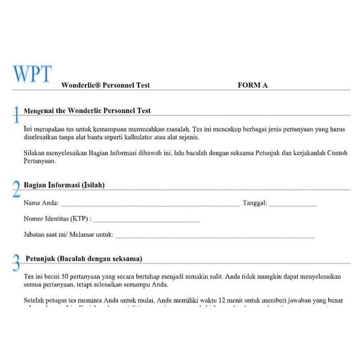Alat Tes Wpt Lengkap Dengan Skoring Wpt